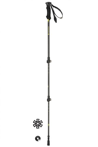 Cuenta con un sistema de ajuste rápido que permite regular su altura de forma precisa y segura. Su empuñadura ergonómica con correa ajustable brinda comodidad y control incluso en recorridos prolongados, mientras que su punta de tungsteno ofrece tracción superior en suelos rocosos, húmedos o irregulares.