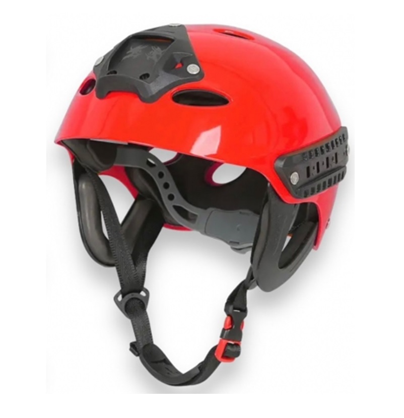 Fabricado con polímeros de alta densidad, su interior acolchado reduce la vibración y protege contra golpes. Incluye rieles laterales y montura frontal para la integración de accesorios como linternas, cámaras o visores.