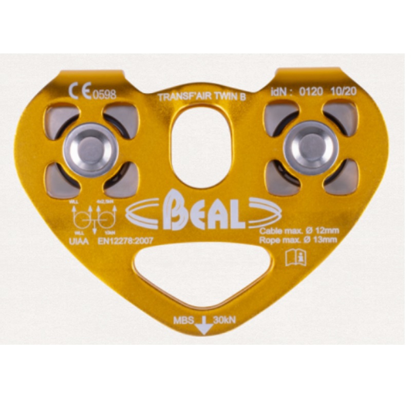 La polea Transf’Air Twin B con doble rodamiento es una herramienta técnica diseñada para trabajos exigentes de rescate, evacuación, tirolesas, arborismo y sistemas de izado. Su estructura de placas móviles y poleas dobles permite trabajar con cuerdas de hasta 13 mm de diámetro, ofreciendo gran versatilidad.